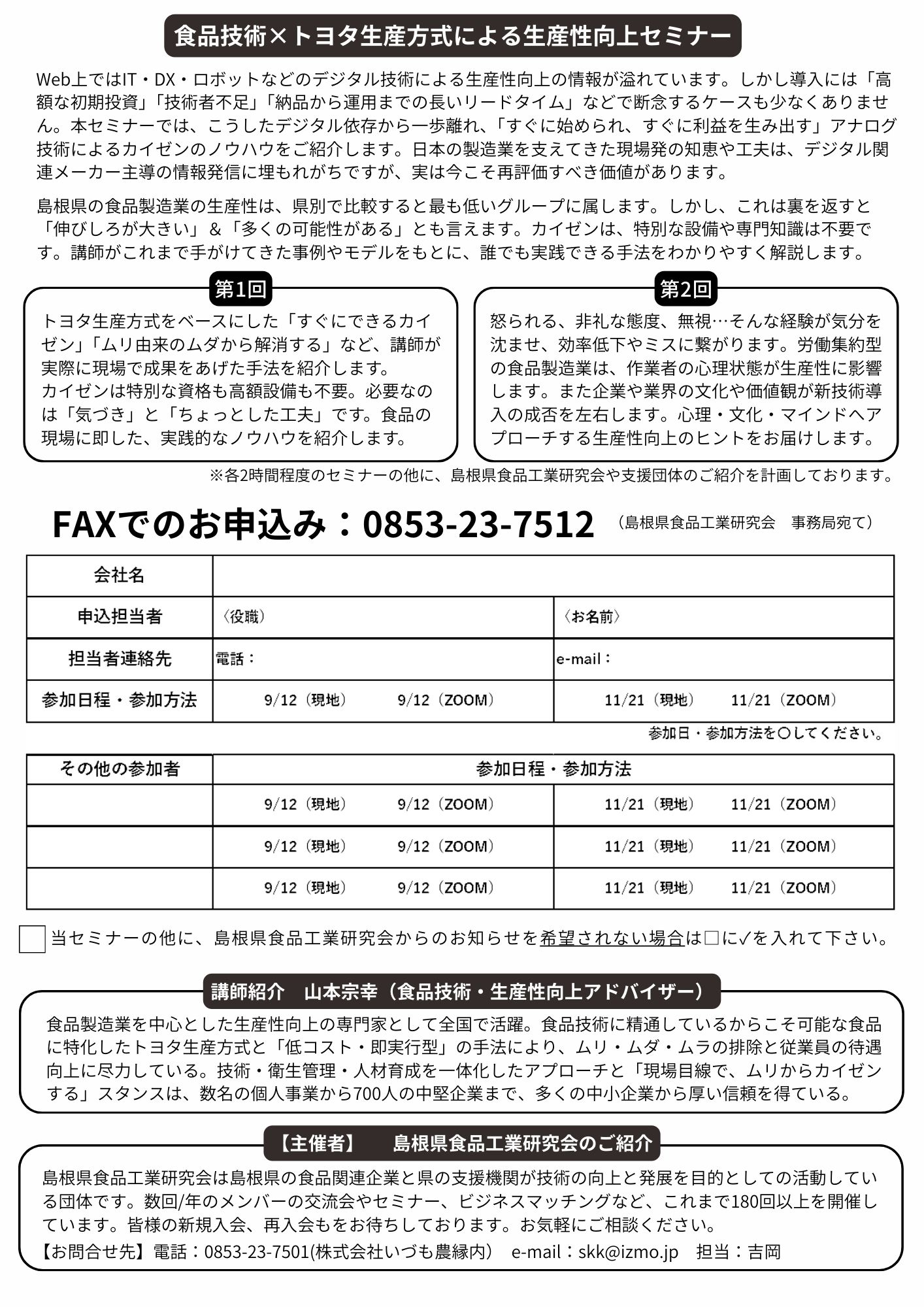 当セミナーのサイトは島根県食品工業研究会のご依頼を頂き
